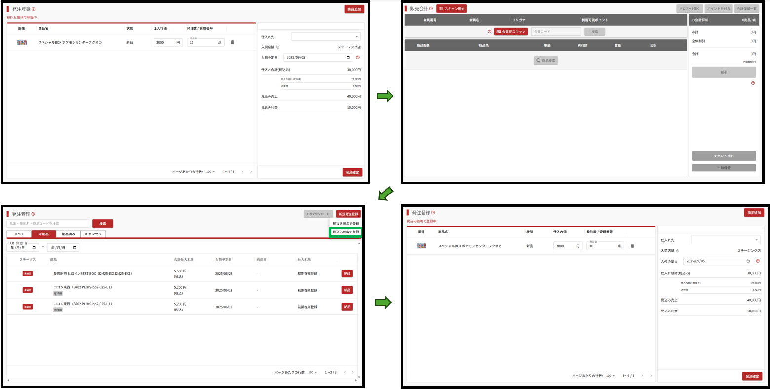 発注登録で商品を追加している途中で別画面へと遷移・ページのリロードをしても内容が保持され、次回作成開始時にその商品内容が追加された状態で始まるようになりました。