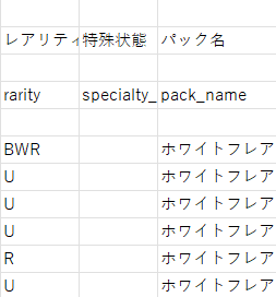 在庫CSVのデータにパック名とレアリティの情報を追加しました。