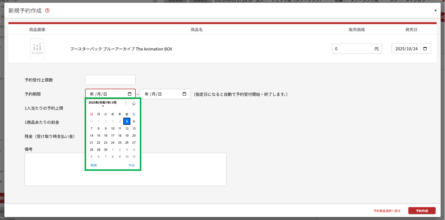 予約作成時に過去の日付を指定して予約期間を設定できないようになりました。
