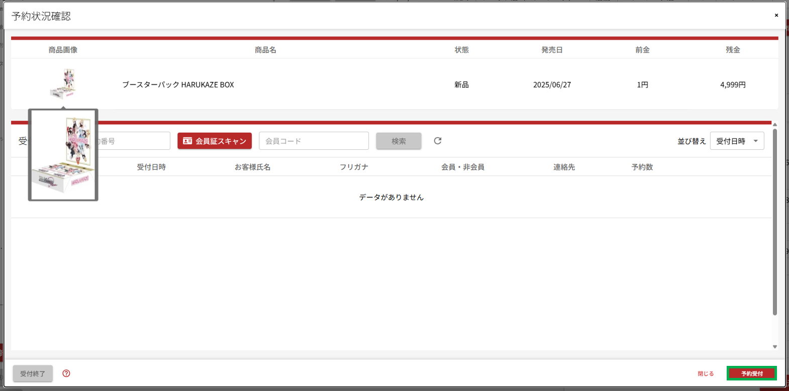 受付中の予約の「予約状況確認」から予約受付ができるようになりました。