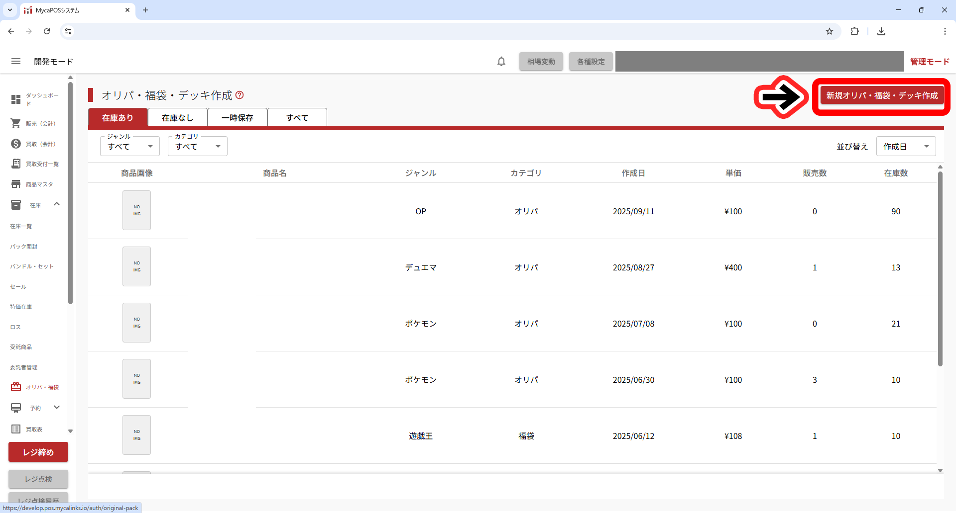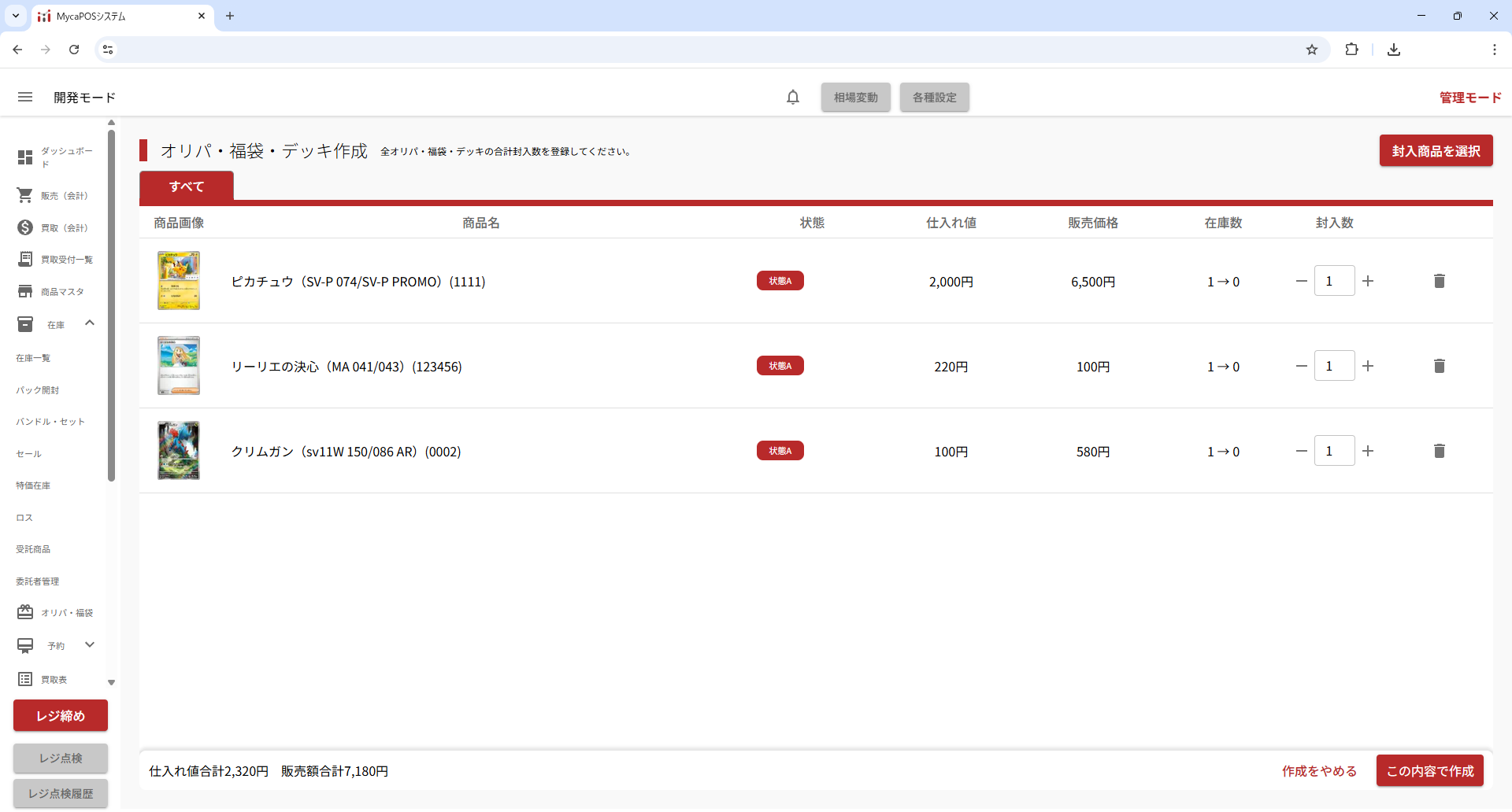 対象は「オリパ・福袋などの作成」「新規発注」「買取査定」時ですが、今回はオリパ作成にて説明いたします。