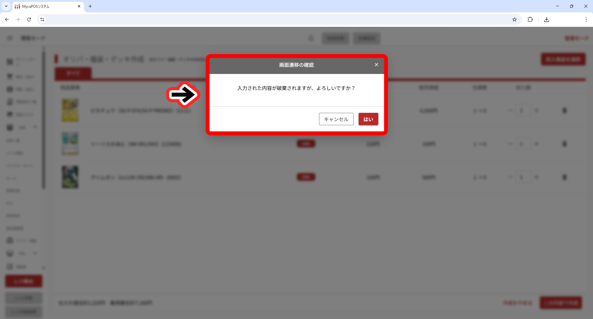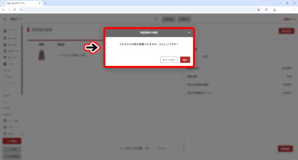 ページを移動しようとすると「入力された内容が破棄されますが、よろしいですか?」とポップアップが出ますが、そのまま移動してください。