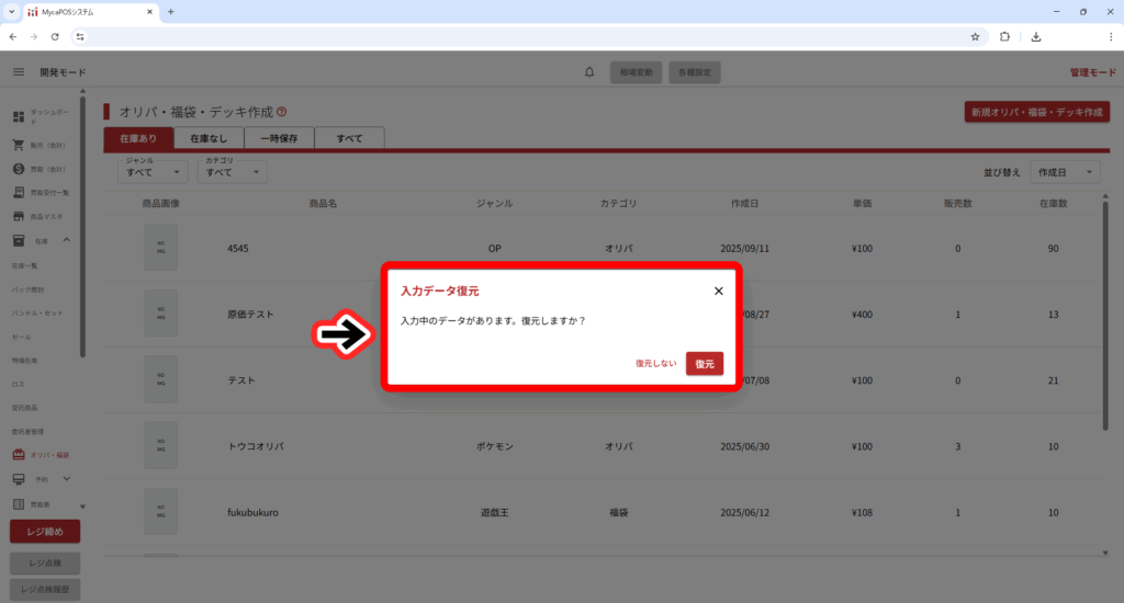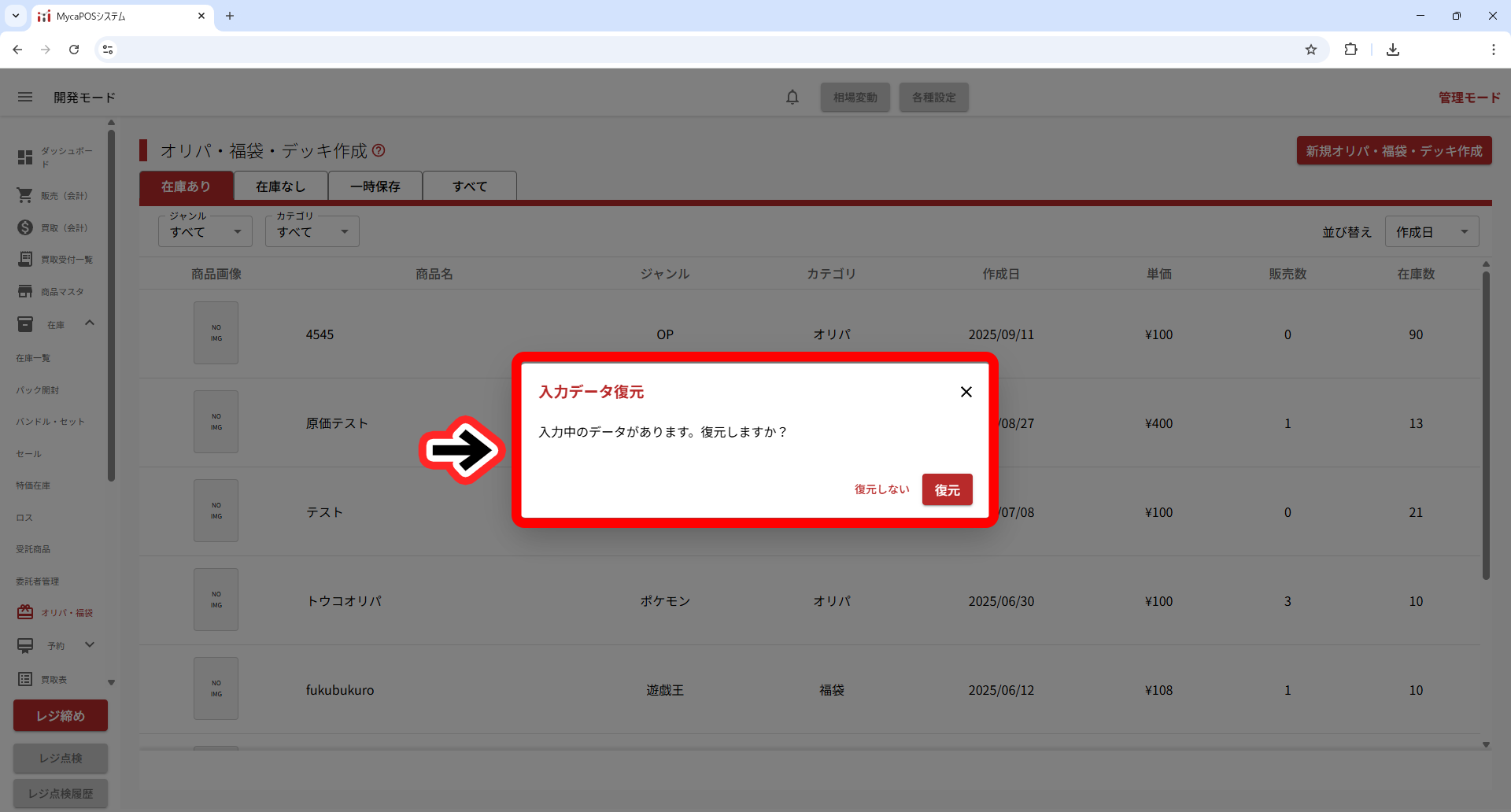 前回のアップデートにて、オリパ作成等で作成途中の情報が保存されるアップデートをしました。