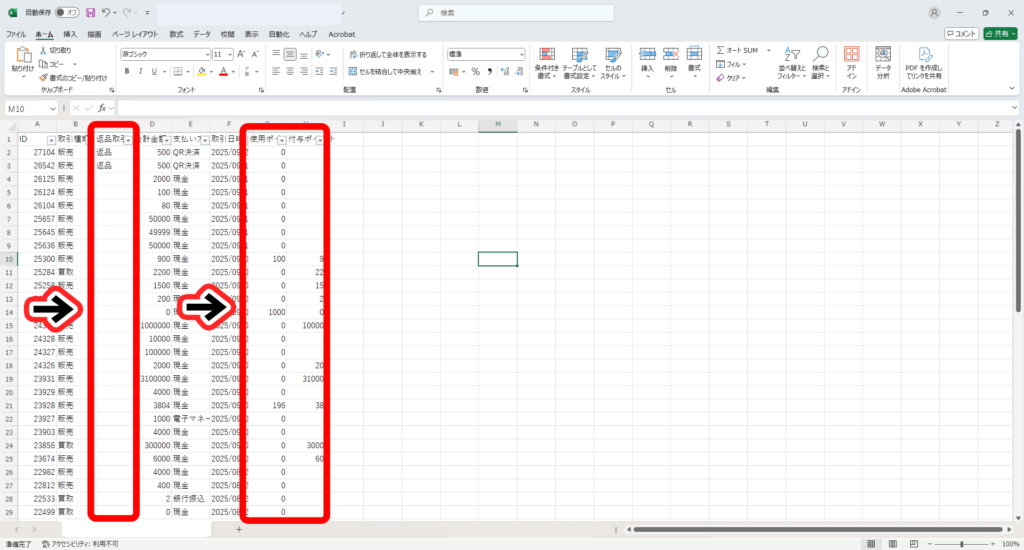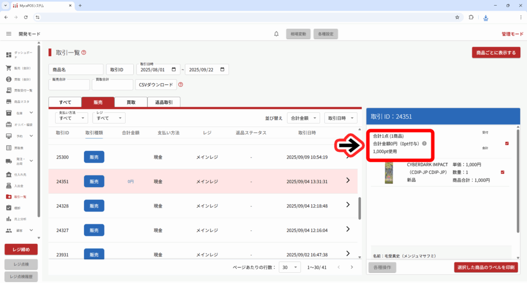 ■取引一覧のCSVにポイントの使用と返品を追加しました。