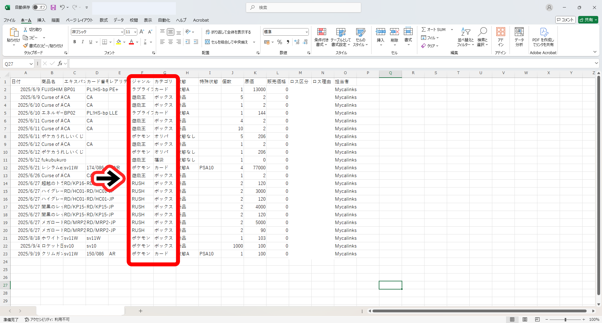 ■「ロス」のCSVにジャンル、カテゴリを追加しました。