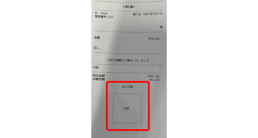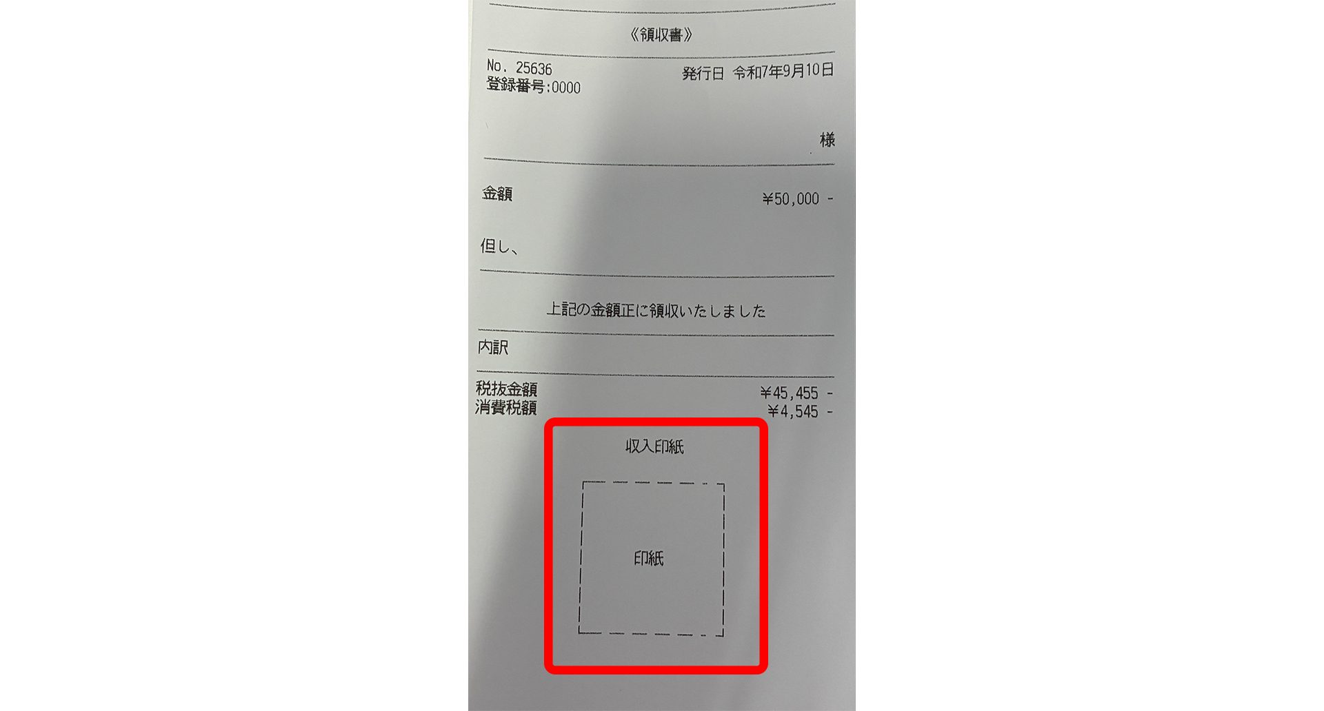 5万円以上の取引の際、領収書に収入印紙を貼り付けする必要があります。