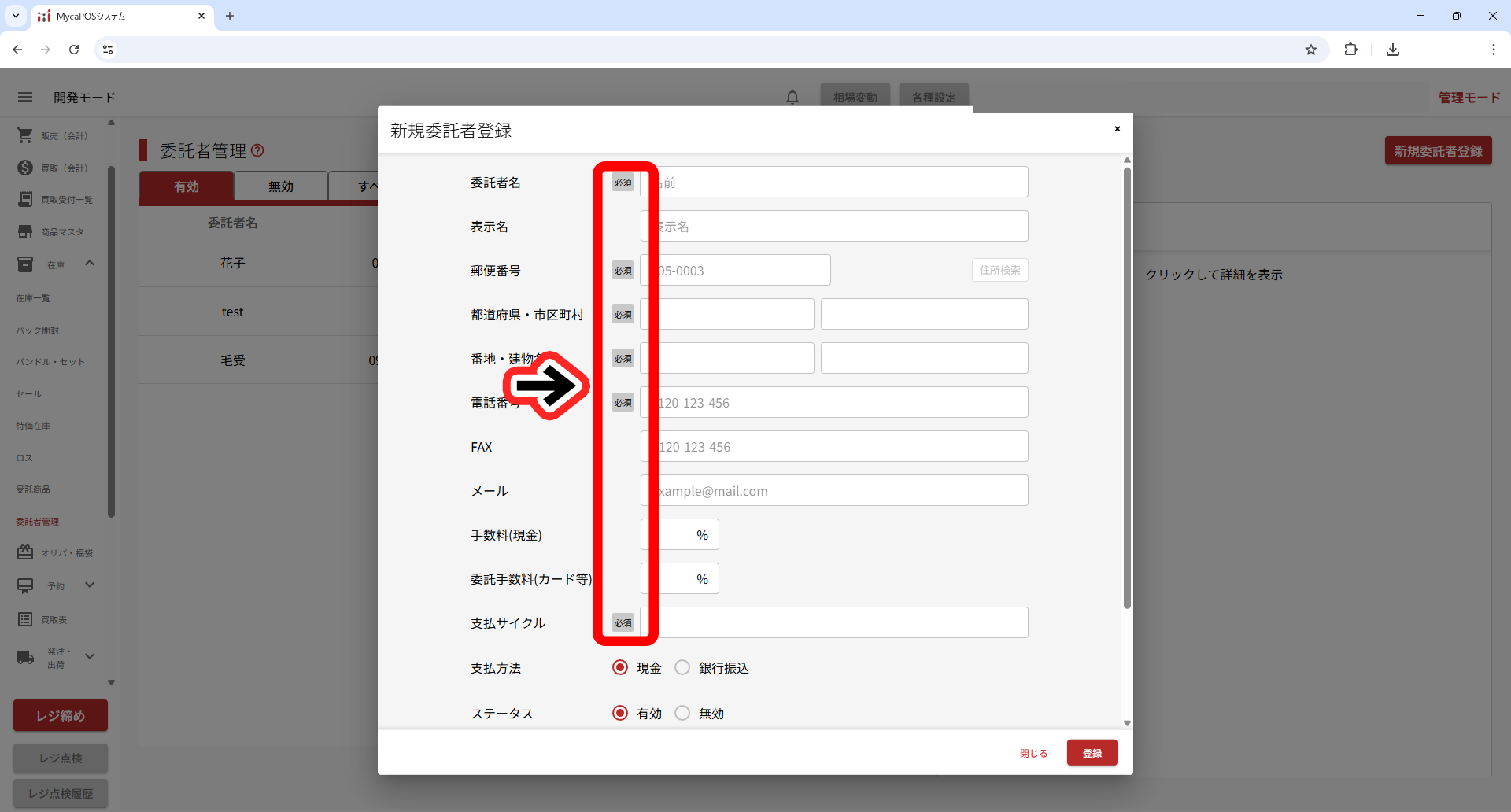 ■委託者登録の際に必須入力項目がわかるように「必須」の表示を追加しました。