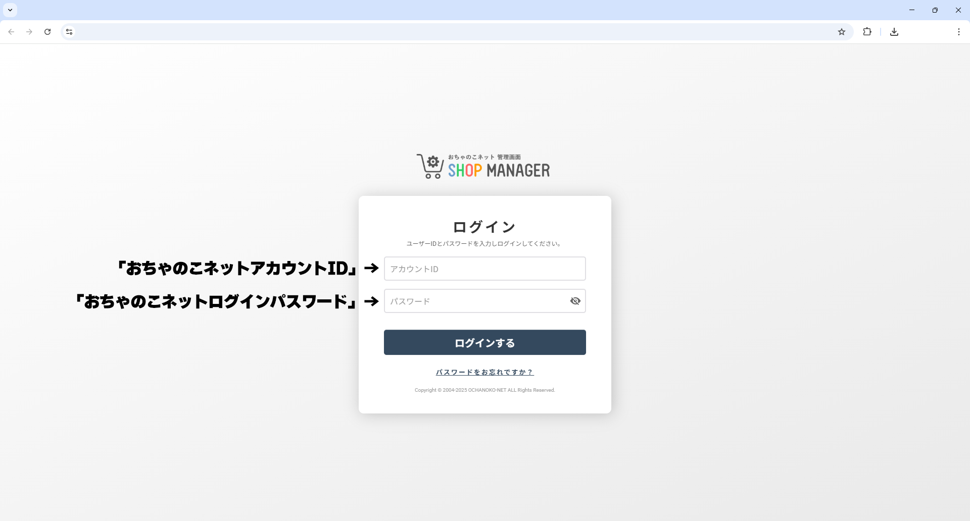 この2つはおちゃのこネットにログインする際に使用するものになります。