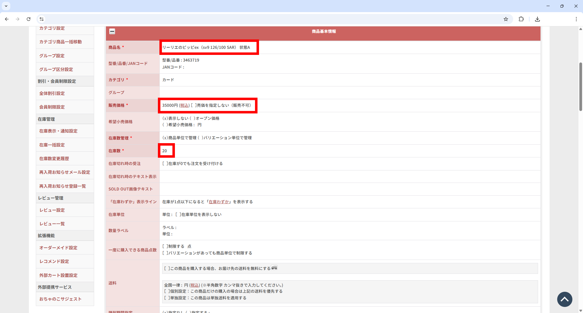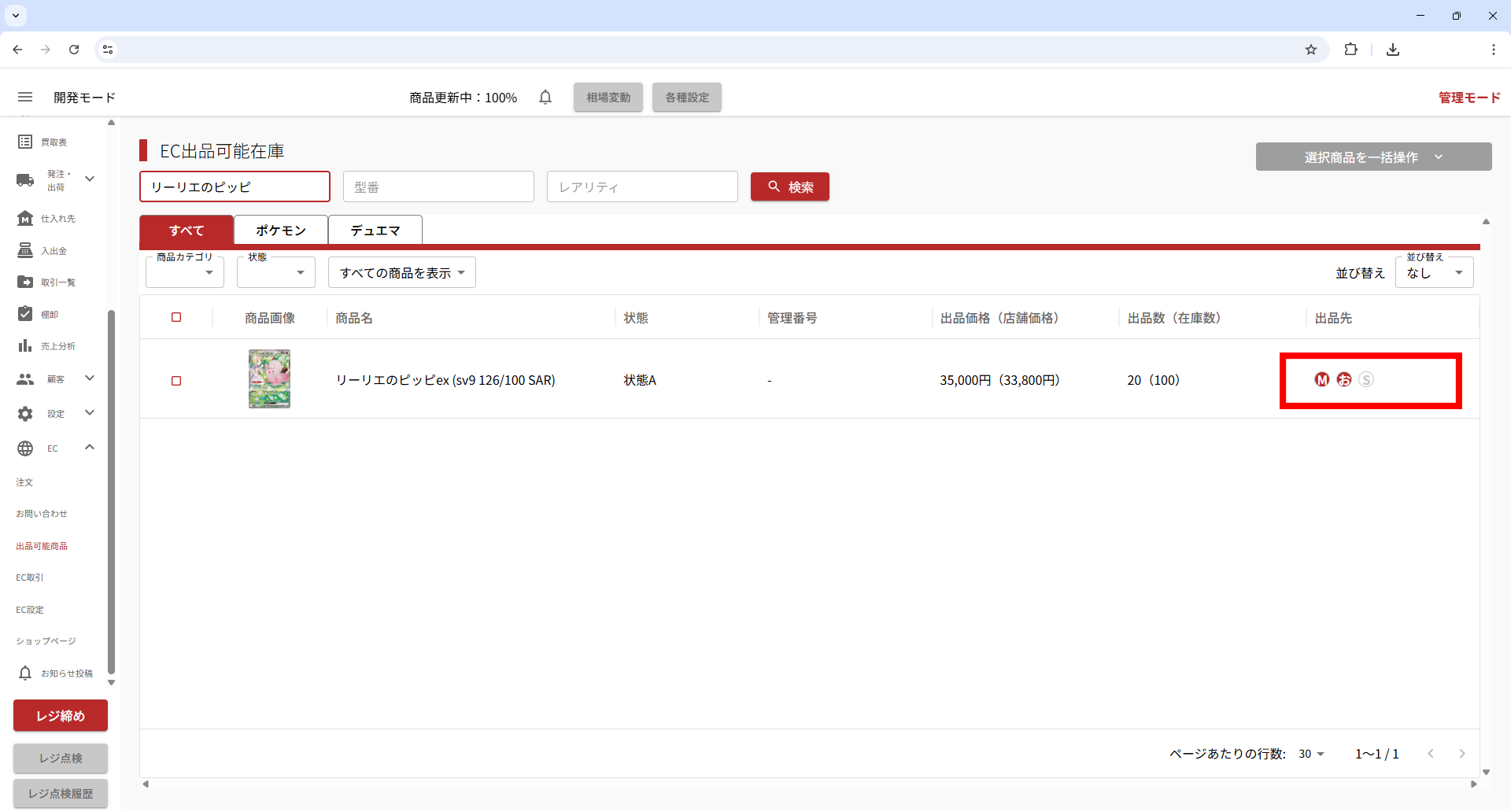 (画像では先ほど登録した35,000円で20個出品が反映されております)