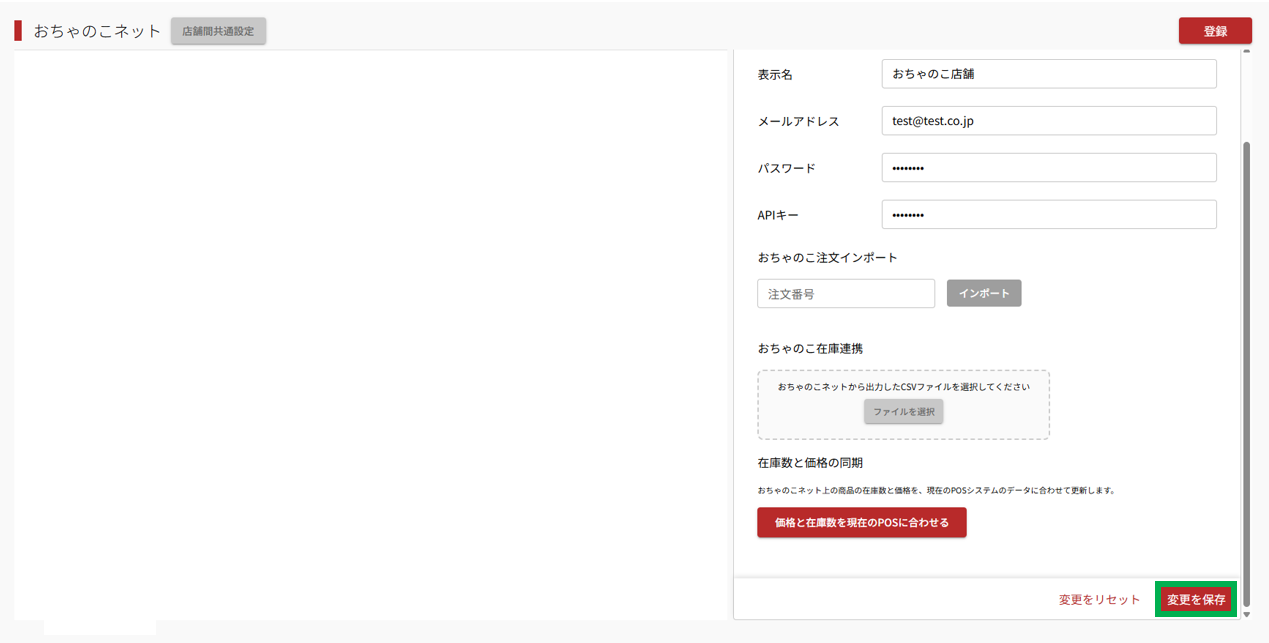 すべての入力が完了したら、「変更を保存」をクリックしていただきますとPOS上に連携内容が表示されます。