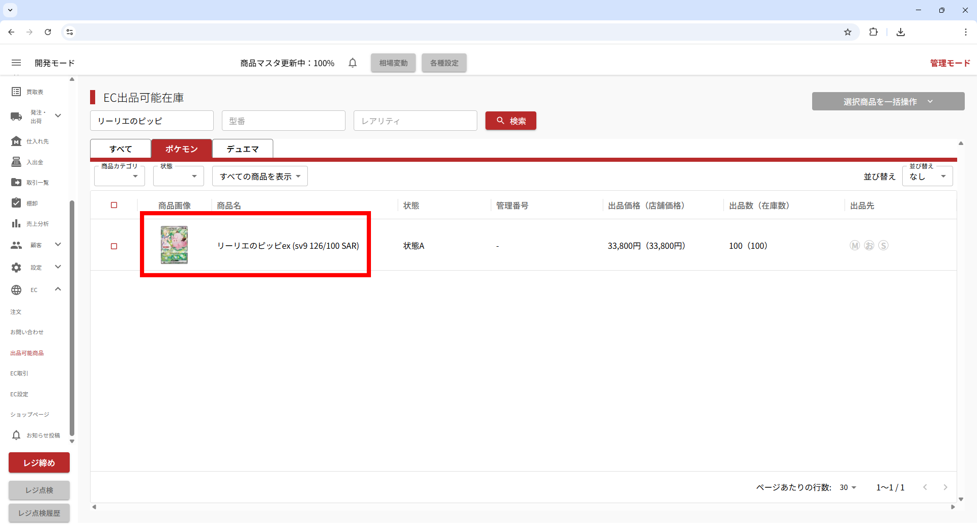 この作業を持ってPOSの在庫数が戻り、POSとおちゃのこネットの在庫数の整合性が保たれます。