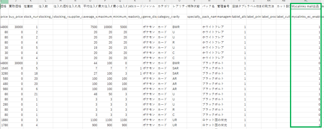 Mycalinks mall出品(0で取り消し、1で出品):MycalinksMallでの出品について設定できます。
