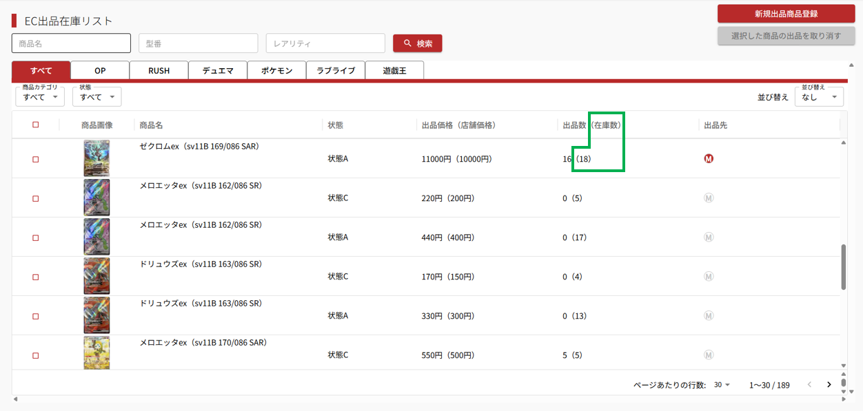 ECサイトの在庫数はPOSの在庫数に準じます。