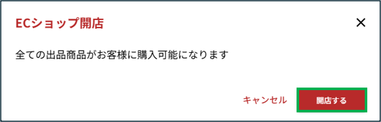 ECへの出品ができるようになります。また、閉店する前に表示していた商品はそのまま表示されます。
