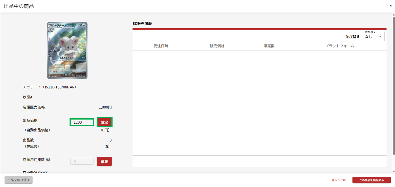 個別で設定した価格は自動出品価格によらない個別の価格として商品ごとに設定することができます。