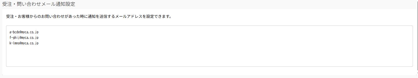 受注・お客様からのお問い合わせがあった時に通知を送信するメールアドレスを設定できます。