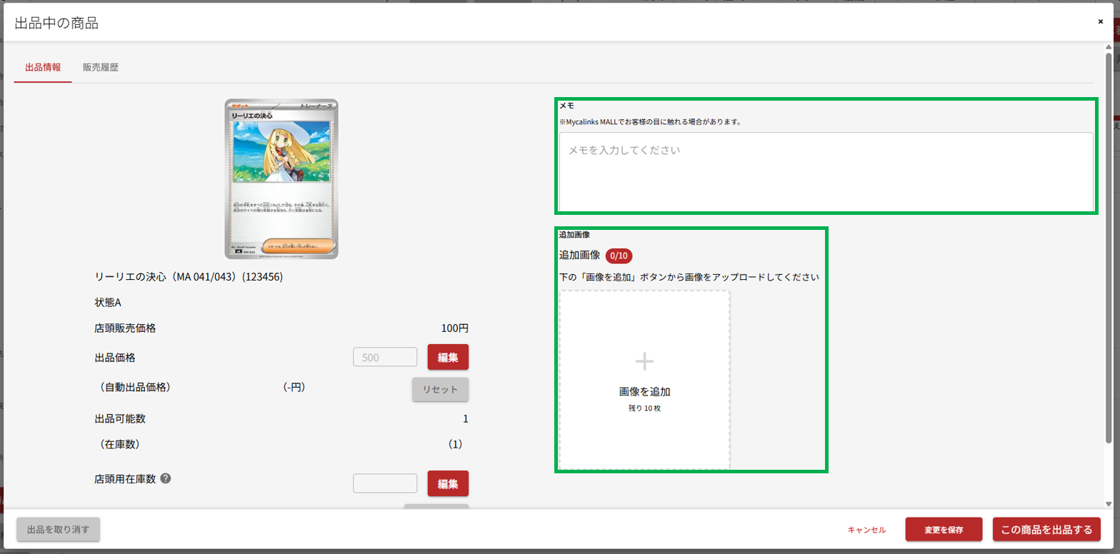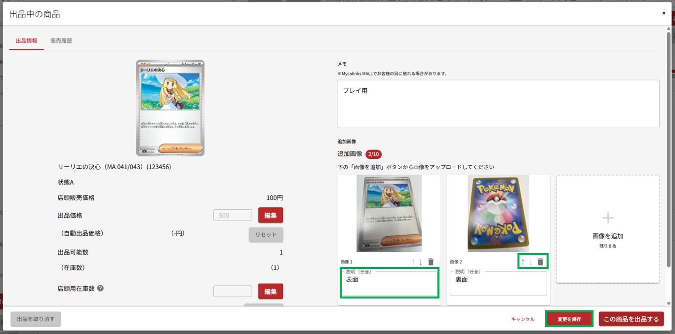 メモ・画像の追加が完了したら「変更を保存」を押してください。