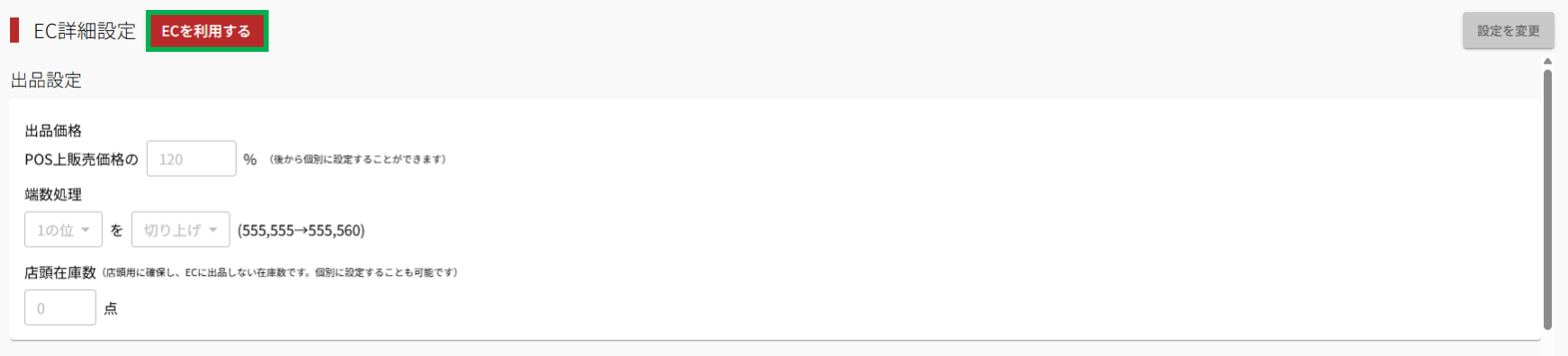POS上での販売価格とは別にEC上での販売価格を設定する必要があります。