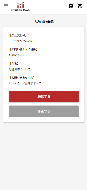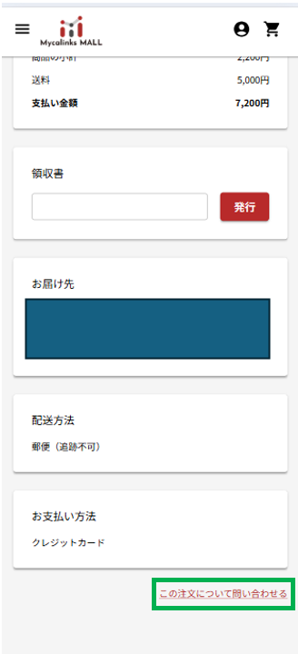 注文履歴の注文詳細の、下部にある「この注文について問い合わせる」を押します。