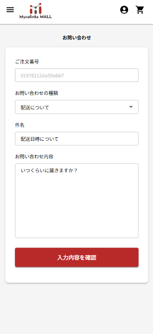 配送先設定が「店舗に非公開」となっているリストからの注文では、配送先情報がMycalinksの住所となります。一度Mycalinksに送付していただき、Mycaがお客様へと発送する形式になります。
