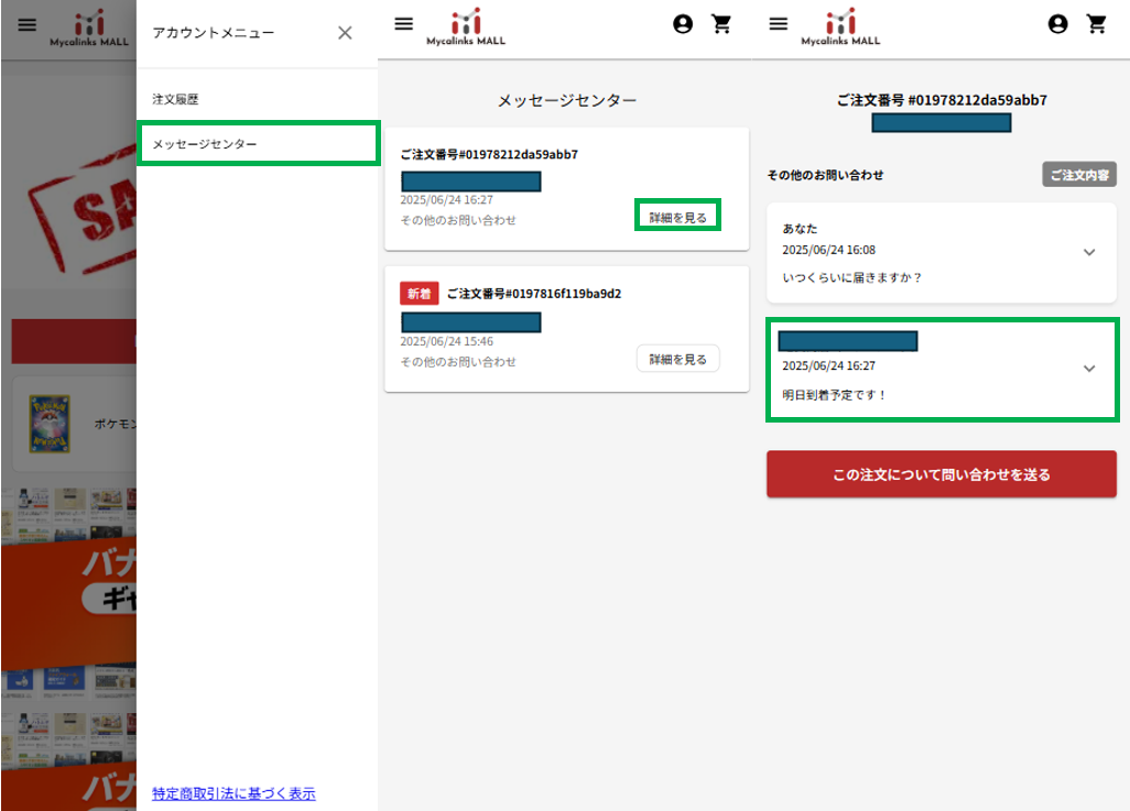 返信はアカウントメニューのメッセージセンターから確認できます。