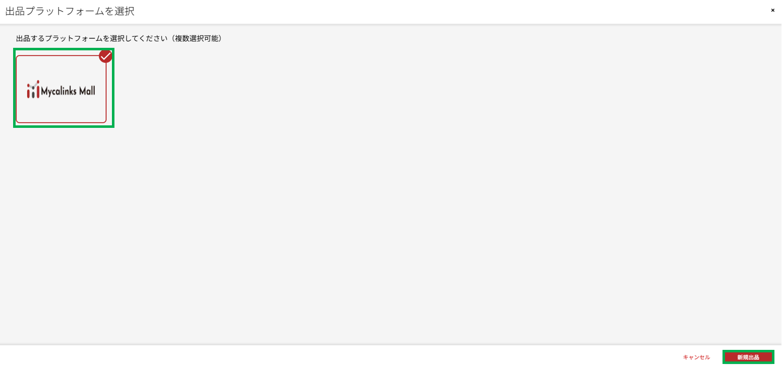 3.プラットフォーム(Mycalinks Mall)を選択して新規出品を押します。