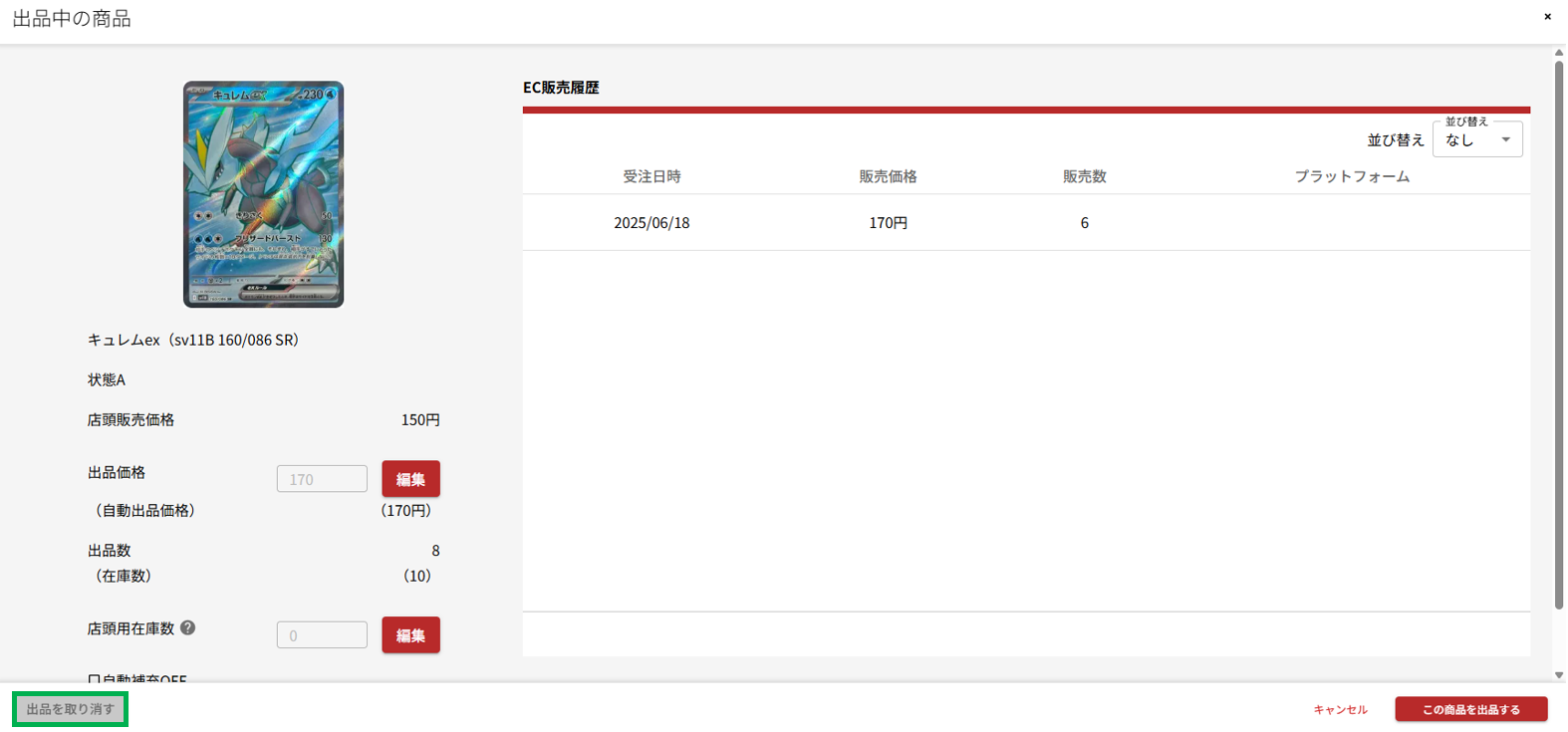 4.選択した商品がMallから非表示にされ、出品が取り消されます。