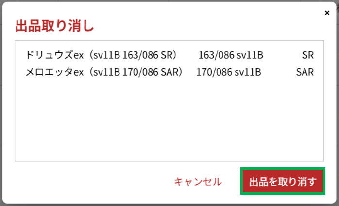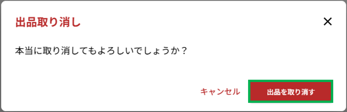 3.ポップアップがでるので、「出品を取り消す」を押します。