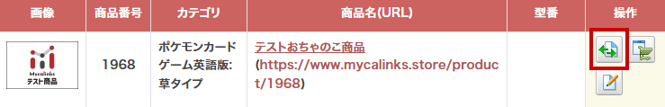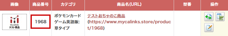 在庫連携させたい対象の商品を検索し【商品番号】を確認する。