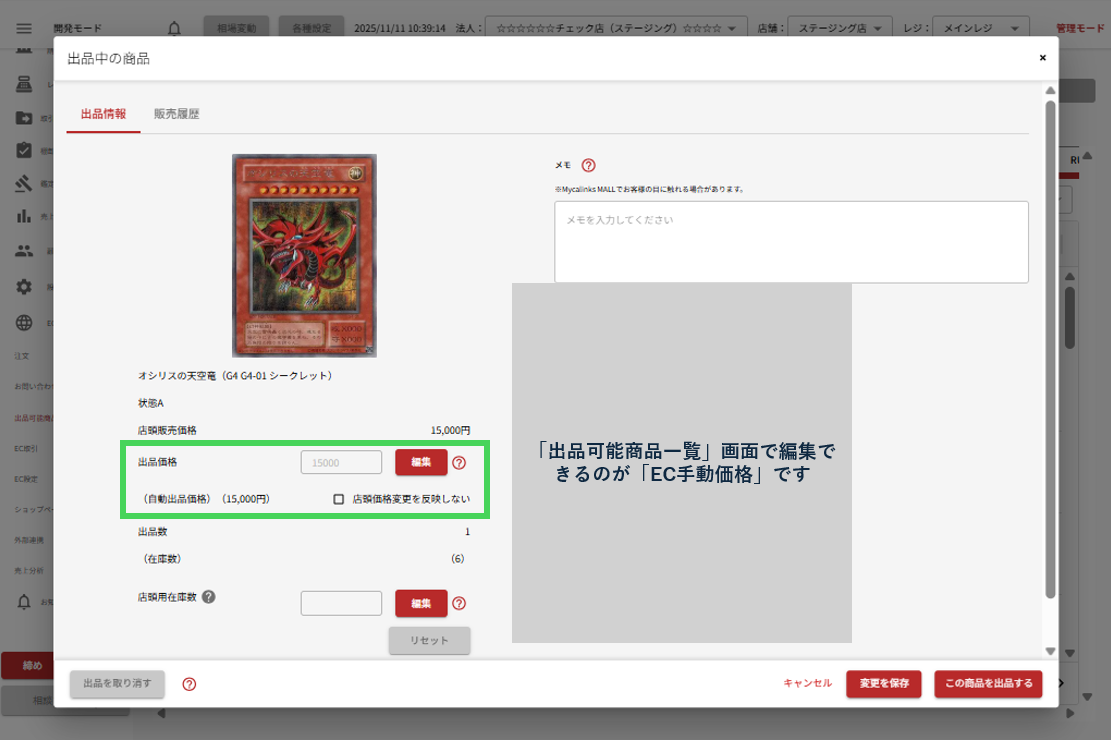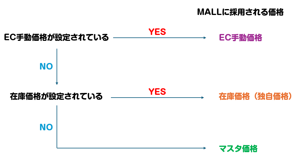 …出品可能商品一覧から手入力できる価格です。EC手動価格が設定されている場合、MALLではどの価格よりも優先して採用されます。