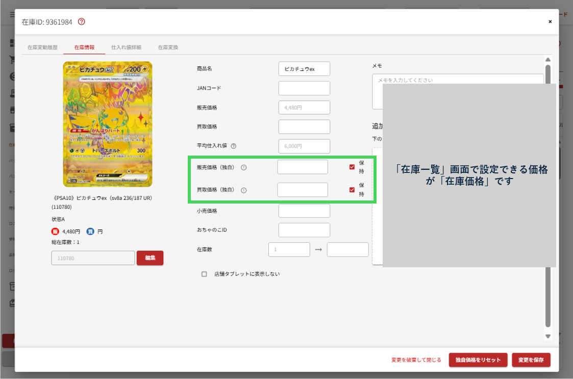 …在庫一覧から設定できる価格です。在庫価格が設定されている場合、マスタ価格よりも優先して採用されます。