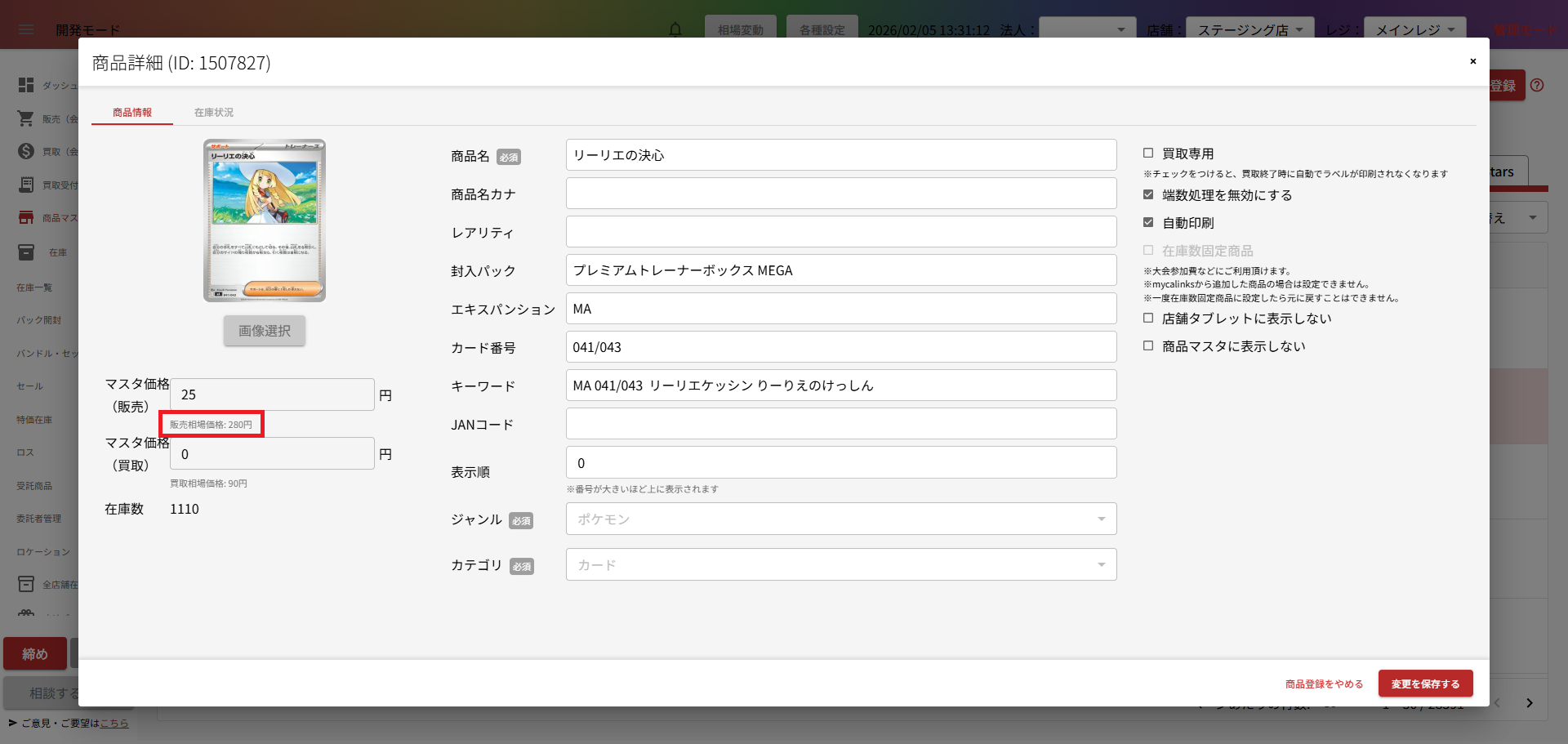 ・商品マスタの商品詳細に販売相場価格が表示されるようになりました。
