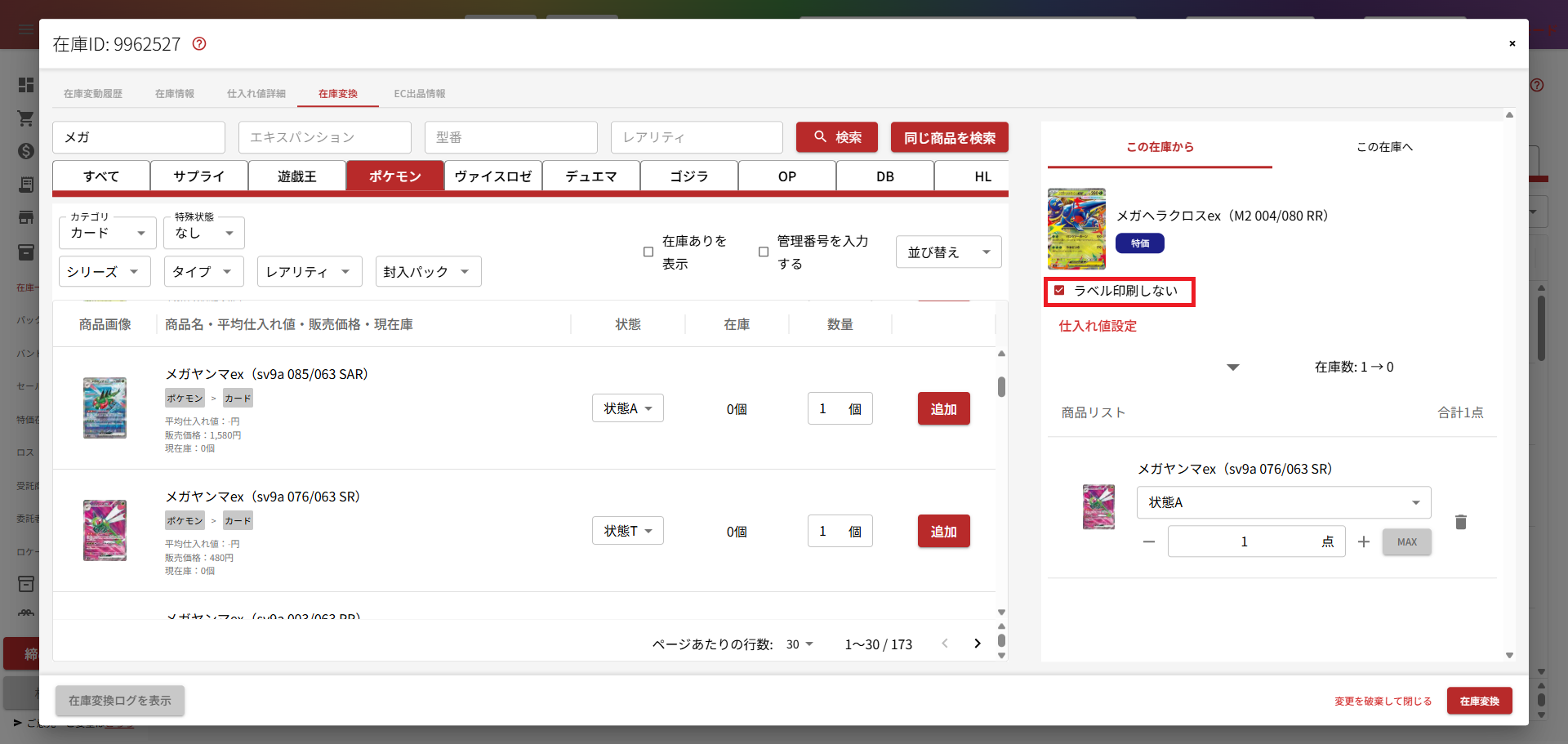 ・在庫変換後もラベル印刷(オン・オフ)の設定を引き継ぐようになりました。
