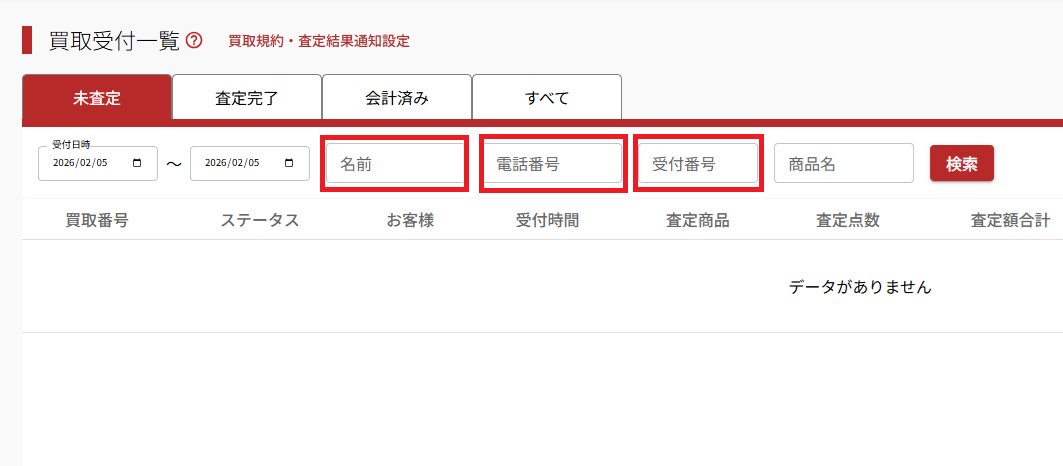 ・買取受付一覧を名前・電話番号・受付番号から検索できるようになりました。