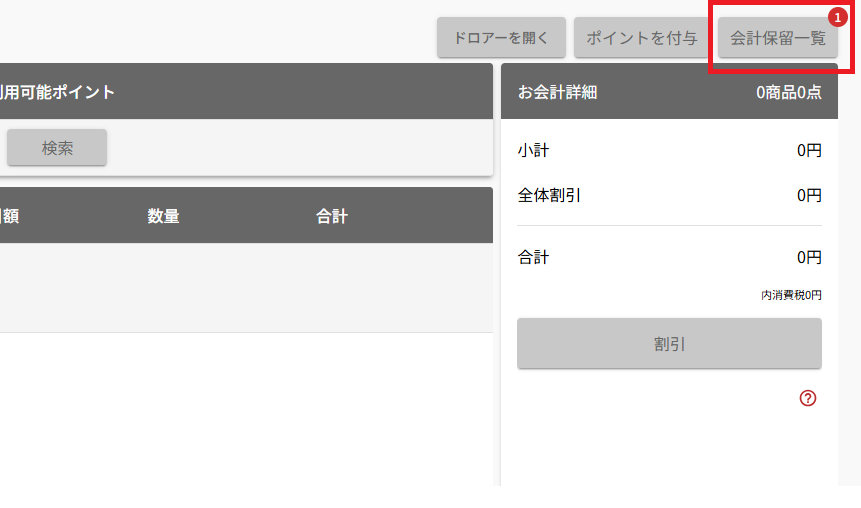 タブレット注文が入ると[会計保留]ボタンにバッジが表示されます。